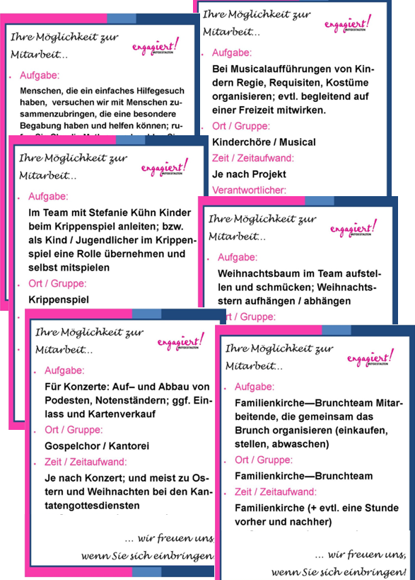 Die Homepage der Kirchengemeinde Oberkaufungen besticht durch eine wunderbare Vielfalt an gut beschriebenen Engagementmöglichkeiten. |
